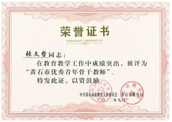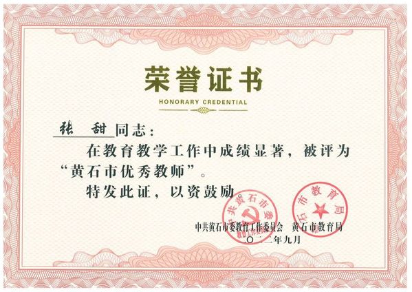 本网讯 秋风送爽果飘香,金声玉振誉满园。在中共黄石市委教育工作委员会、黄石市教育局2022年度优秀评选中,乐动(中国)荣誉榜再添新篇。谨向以下教工表示祝贺!