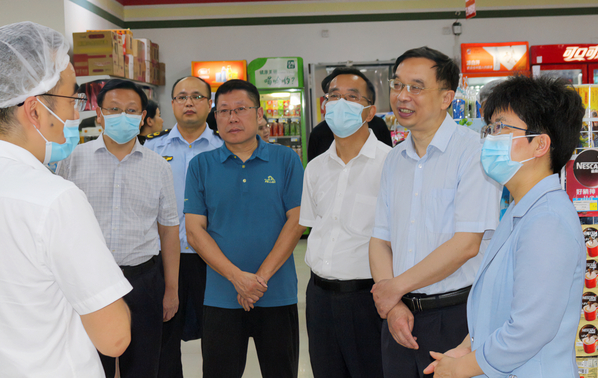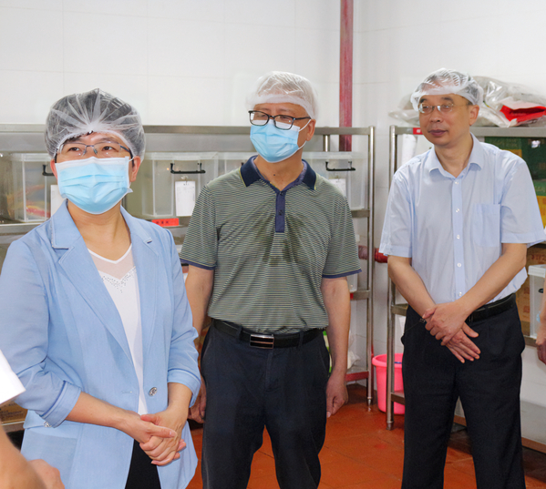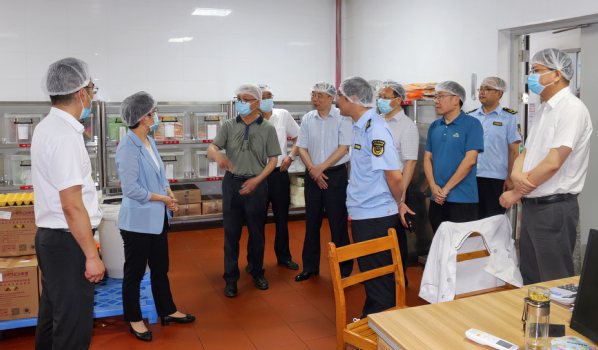本网讯(通讯员涂亦乐)为进一步增强食品安全意识,筑牢食品安全防线,全面推进食品安全“两个责任”工作落实见效。5月30日上午,市委常委、市委宣传部部长周庆荣率市市场监管局、开发区·铁山区相关部门一行深入乐动(中国)食堂开展食品安全检查工作。院长李开灿、常务副院长杨学斌、党委书记杨邓红、副院长张志华及相关部门负责人陪同检查。