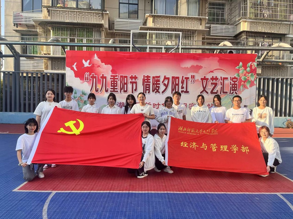 本网讯(通讯员 姜希望)10月23日,是中国传统节日重阳节暨全国第十一个老年节,为了更好地继承和发扬孝亲敬老的传统美德,培育新时代青年服务社会、助人为乐的优良品质,经济与管理学部学生党支部、团总支、学生会携手赴黄石市西塞山区滨湖社区参加“九九重阳节,情暖夕阳红”文艺演出。