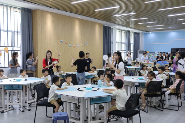 按“一班一活动,一师一幼儿,一室一指导”的原则,贴合实训室的特点,活动在早期阅读实训室、蒙台梭利实训室、保育实训室、手工实训室、智慧幼儿园实训室、奥尔夫实训室和物理演示实验室同时进行。大学生们精心策划了活动,包括科技展览、皮影戏、手工制作、音乐游戏、趣识动物、娱乐互动等。这些活动不仅推动孩子们的能力发展,还增进了师生的互动与交流。孩子们在活动中展现出高昂的热情和积极性,他们与老师一起完成任务,在快乐中接受知识,在观察中学会思考。