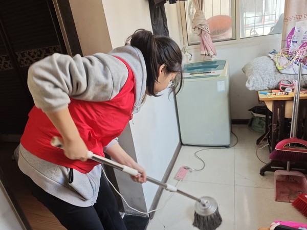 当天下午,志愿者走进老人们的家中,帮助老人们打扫卫生,清理杂物,通过大家的共同努力,老人们的家中变得整洁明亮起来。志愿者一边打扫卫生一边与老人聊起了家常,询问老人的健康状况、生活需求、饮食起居,并再三叮嘱老人要保护好身体,注意饮食卫生。