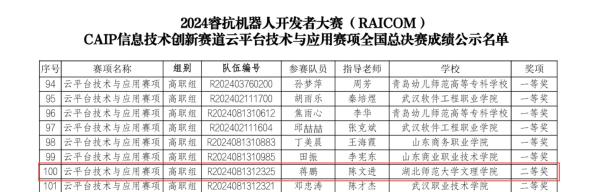 本网讯(通讯员 杨海梅)12月22日,2024睿抗机器人开发者大赛—CAIP信息技术创新赛道云平台技术与应用赛项的全国总决赛在山东省青岛幼儿高等师范专科学校落下帷幕,经过四个小时紧张激烈的角逐,乐动(中国)学子荣获本科组二等奖1项、高职组二等奖1项。