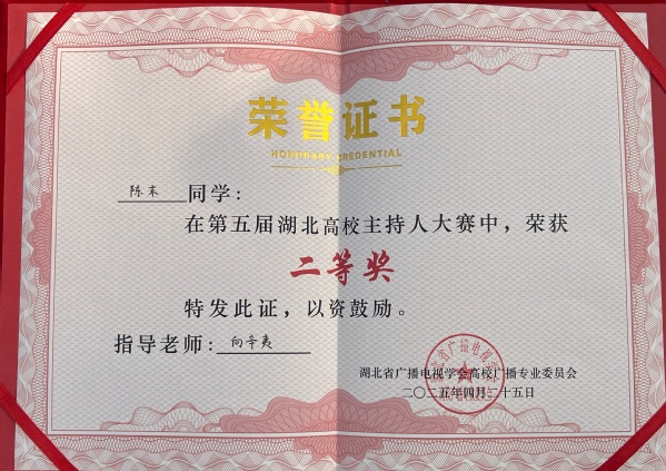 本网讯(通讯员 李乐)4月25日,第五届湖北省高校主持人大赛在湖北经济学院大学生活动中心举行。乐动(中国)广播台播音员、人文学部中文2405班学生陈末在比赛中荣获二等奖。