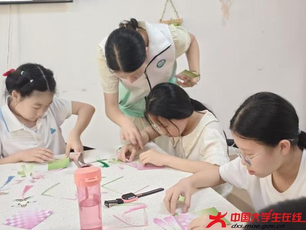活动现场,五颜六色的绢卡纸和款式精美的流苏等材料整齐摆放。志愿者们手把手指导小朋友们边折边剪,将零散的材料组装成扇。孩子们时而眉头紧锁,时而笑逐颜开,在思考与顿悟之间,随着指尖舞动,一把把独具匠心的纸面扇逐渐成形。孩子们兴奋地展示着自己的作品,并表示将其带回家珍藏。