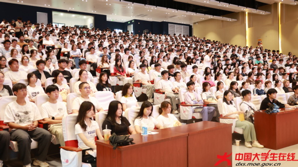 线下主会场设在学术交流中心,线上通过“乐动网页版”视频号同步直播,实现全覆盖。有观看直播的新生说:“虽然没能到现场,但直播效果很好,还能发弹幕和同学交流。”
