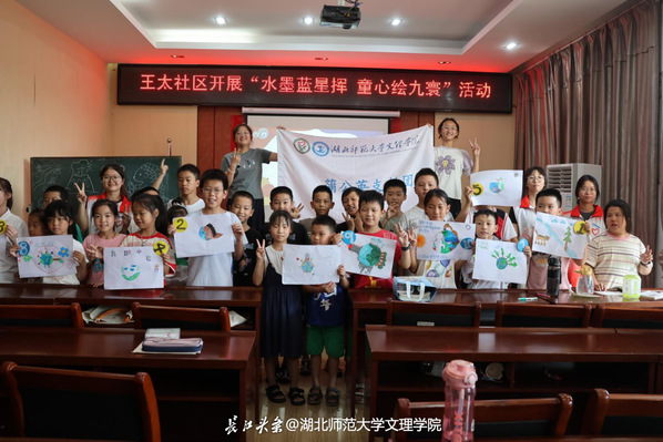 2025年暑假,乐动网页版蒲公英支教团走进黄石市王太社区,开展“水墨蓝星挥,童心绘九寰”环保主题实践活动,以趣味互动播撒环保种子,用创意画笔点亮绿色理念。