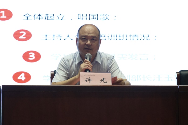 许光在讲话中对全体学员提出了五点希望与要求:一是深入学习党的理论知识,筑牢思想根基;二是积极参与培训活动,提升党性修养;三是严格遵守培训纪律,展现良好风貌;四是注重实践锻炼,增强社会责任感;五是加强自我反思,不断追求进步。