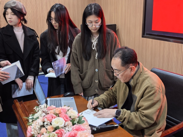 活动尾声,李咏成向校图书馆、人文学院等单位签名赠书。