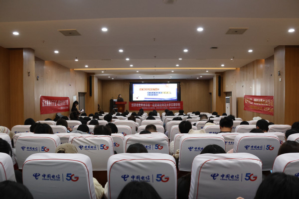 本网讯(通讯员 邓忻吾)11月18日晚,经济与管理学院在图书馆报告厅举办“链通金融,智领未来”投资者教育宣讲活动。活动特邀东莞证券武汉营业部投教老师蔡晓,以及理财顾问阮佳欣、李晓丽、任鑫洋组成的专业团队担任主讲。经济与管理学院相关专业教师代表与学生代表参加了讲座。