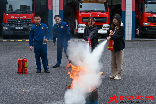 在实操体验环节,同学们在消防员的专业指导下,进行了灭火器操作和消防服穿戴练习。通过动手实践,大家熟练掌握了灭火器的正确使用方法,有效提升了应急处置能力。消防服穿戴体验让大家切身感受到消防员在执行任务时所面临的艰辛与风险,进一步加深了对“人民至上、生命至上”理念的理解。