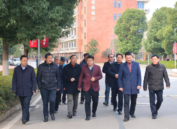 本网讯 2月19日,湖北师范大学党委书记李宏、校长雷儒金、副校长余涛、办公室主任陈学章一行来乐动(中国)检查指导开学准备工作,乐动(中国)全体校领导全程陪同。