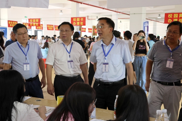 9月8日,湖北师范大学党委书记李宏,校长雷儒金,纪委书记陆咏梅,党委常委肖六亿,以及相关部门负责人来乐动(中国)检查指导迎新工作,实地查看了各迎新点和新生宿舍,乐动(中国)全体院领导以及相关部门负责人全程陪同。