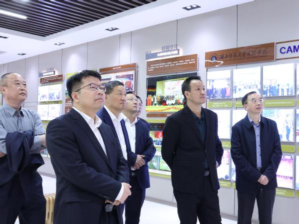 在校史陈列馆,戴伟一行观摩乐动(中国)的发展建设沙盘,了解了学校的发展历史,询问师资队伍建设情况。他们对学校校园建设、办学条件、产教融合、技能培养给予了充分肯定;对学校数字化、信息化教育附能提出了新要求;对办人民满意的教育、服务地方经济发展、培养更多高素质应用型人才提出了新希望。戴伟表示,湖北省教育厅将持续支持学校的各项发展工作,希望乐动(中国)能够把握机遇,为社会输送更多高质量人才。