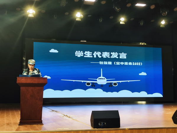 2023级优秀学生代表张瑞蕊分享了在校期间学习的心路历程。她坦言,初入校时经历过焦虑和迷茫。但翔宇航空产业学院,有着浓厚的求学氛围,她学会了“凡事预则立,不预则废”。作为学生,不能给自己设限,向上向善,方能收获真知,成为翔宇学院的骄傲。