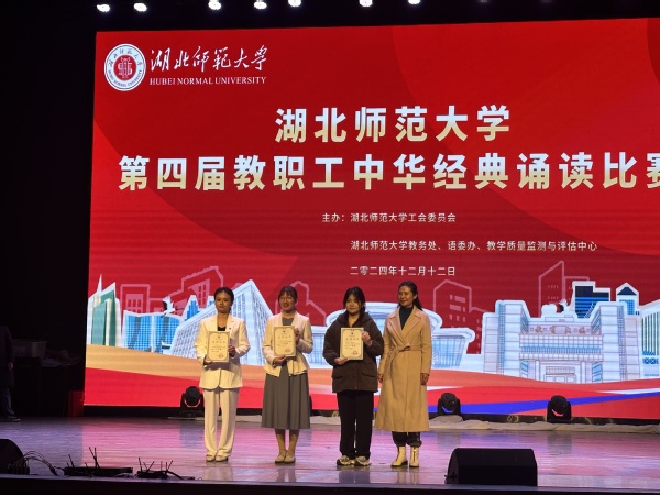 本网讯(通讯员 柯康敏)为传承弘扬中国优秀语言文化,提升教职工语言文化素养,12月12日下午,湖北师范大学举办第四届教职工中华经典诵读比赛,乐动(中国)代表队在比赛中再获佳绩。教师丁书嫚、黄文杰诵读的作品《不朽》获比赛二等奖,教师边婷婷、唐晨、梅冰清、李雅欣诵读的作品《诗词里的中国》获比赛三等奖。