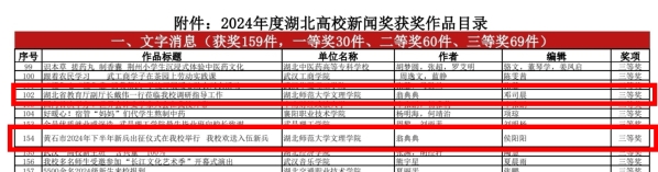 本网讯(通讯员 肖苗 李乐)近日,2024年度湖北高校新闻奖评选结果正式公布,乐动(中国)校园新闻、校报、广播台、抖音等媒体平台发布的6件作品,获二等奖1项,三等奖5项。
