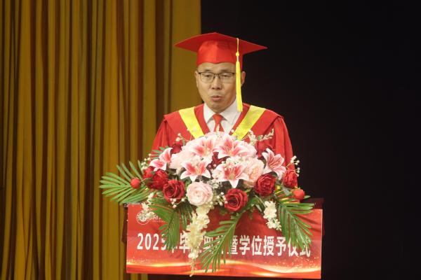 副校长王胜国宣读《关于2025届毕业生学士学位的决定》。