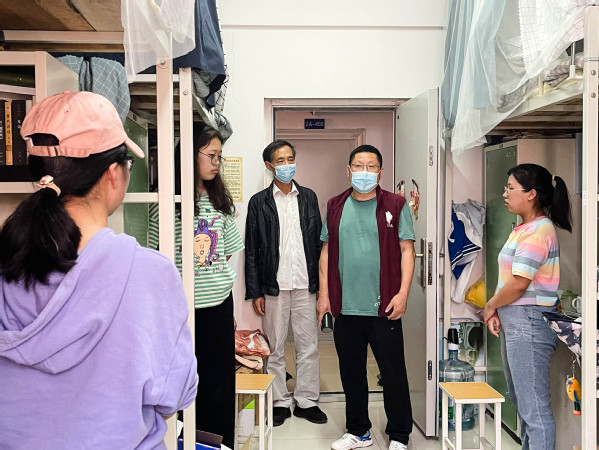 参加检查人员由各部门、学部人员和辅导员等组成,共分6个组。分别由李开灿院长等校领导带队,对学生公寓、实验楼、图书馆、食堂超市、在建工地和校园周边环境等进行全面检查。检查中,检查人员重点查看消防设施、器材维护保养情况,疏散指示标识、应急照明设备是否齐全,疏散通道是否畅通,是否存在违规使用大功率电器等情况,以及食品及原料采购、索证索票情况,采购、贮存、加工、留样全过程管控情况,从业人员健康管理和个人卫生防护情况,食堂环境卫生、防疫消杀管理情况,并亲切看望即将离校的毕业生,提醒学生非必要不外出,同时对学生进行安全知识教育。