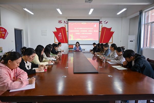 为深入学习贯彻党的二十届三中全会精神,深刻领会习近平总书记关于全面深化改革的一系列新思想、新观点、新论断,切实把思想和行动统一到党中央决策部署上来,1112日下午2点半,经济与管理学部党总支组织开展了“学习贯彻党的二十届三中全会精神”教育培训会。全体教工党员、学生党员分别在学部党员活动室、校图书馆报告厅参加学习。