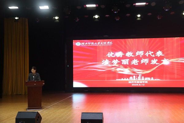 青年教师代表渣梦丽老师结合自身教学与成长经历,对新生提出三点希望:一是学会“归零”与“重启” ,以空杯心态接纳新知识,在遇到挑战时及时调整状态重新出发;二是做好“管理”与“平衡” ,合理分配学习、实践与生活时间,实现全面发展;三是践行“合作”与“分享” ,在团队协作中提升能力,在交流互助中共同进步。