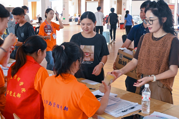 学院领导高度重视迎新服务工作与师生健康安全。活动当日,经济与管理学院党总支副书记罗铭带领全体辅导员,前往各志愿服务点与迎新岗位,亲切慰问了在酷暑中辛勤忙碌的志愿者与工作人员,并将提前准备好的冰镇饮用水等防暑降温物资逐一送到大家手中,对他们不辞辛劳、热情奉献的付出表示充分肯定与感谢。