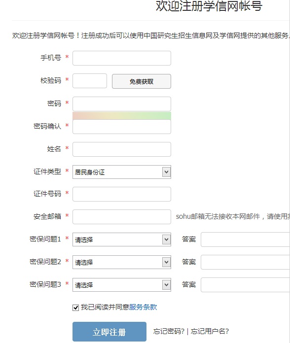 3.如果学信网提示学生所使用的身份证号码已经被注册使用,导致无法注册及登录,请同学首先确认自己是否因入伍或其他原因曾经注册过学信网的帐号。如果注册过,可通过找回用户名、找回密码功能找回自己原有的帐号进行登录。如果未注册过帐号的,请按照学信网提示的解决办法来完成注册。