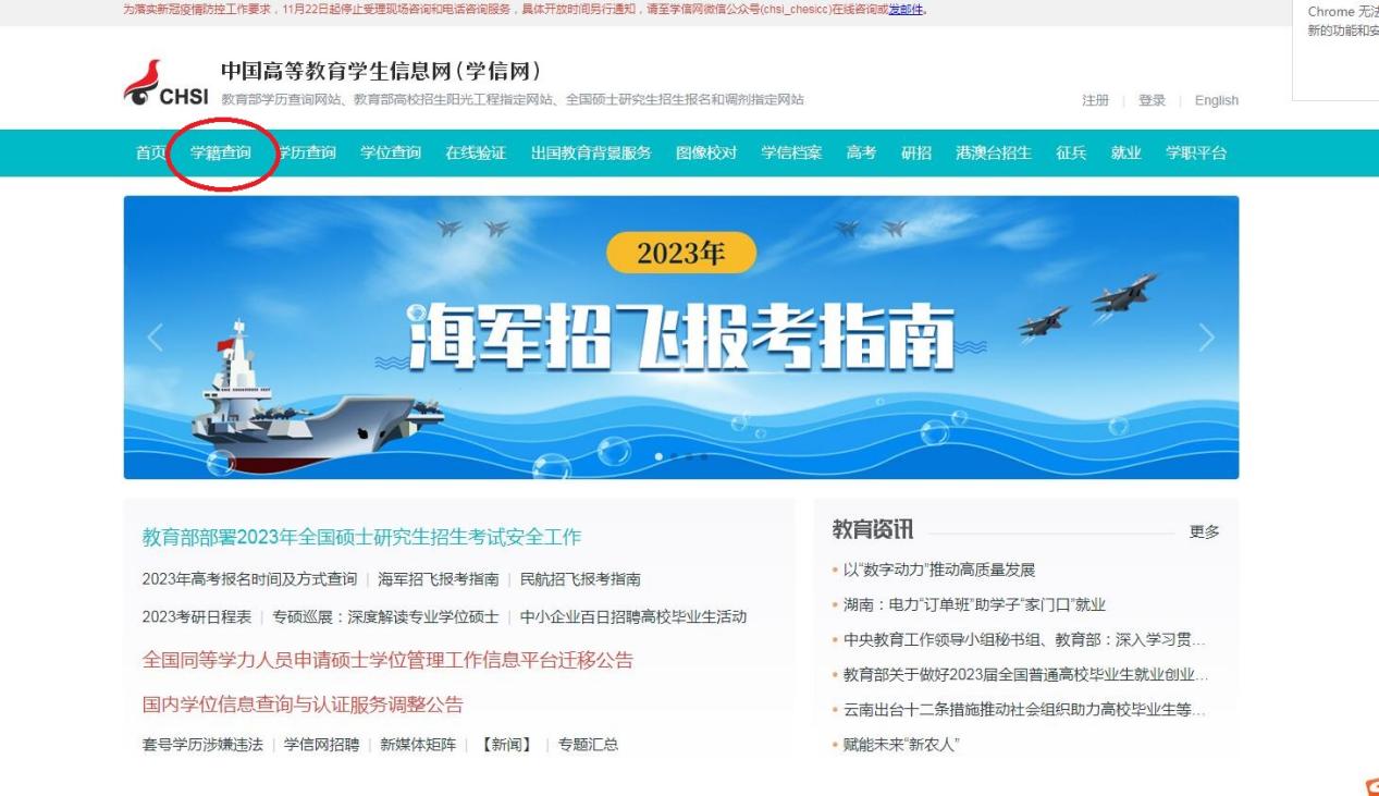 1、输入学信网网址:http://www.chsi.com.cn/,点击学籍学历查询: