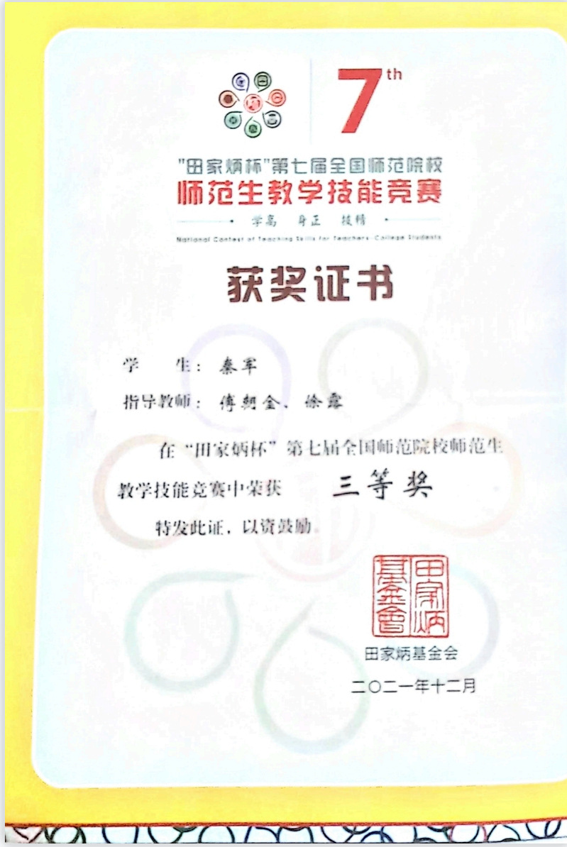 “田家炳杯”第七届全国师范院校师范生教学技能竞赛