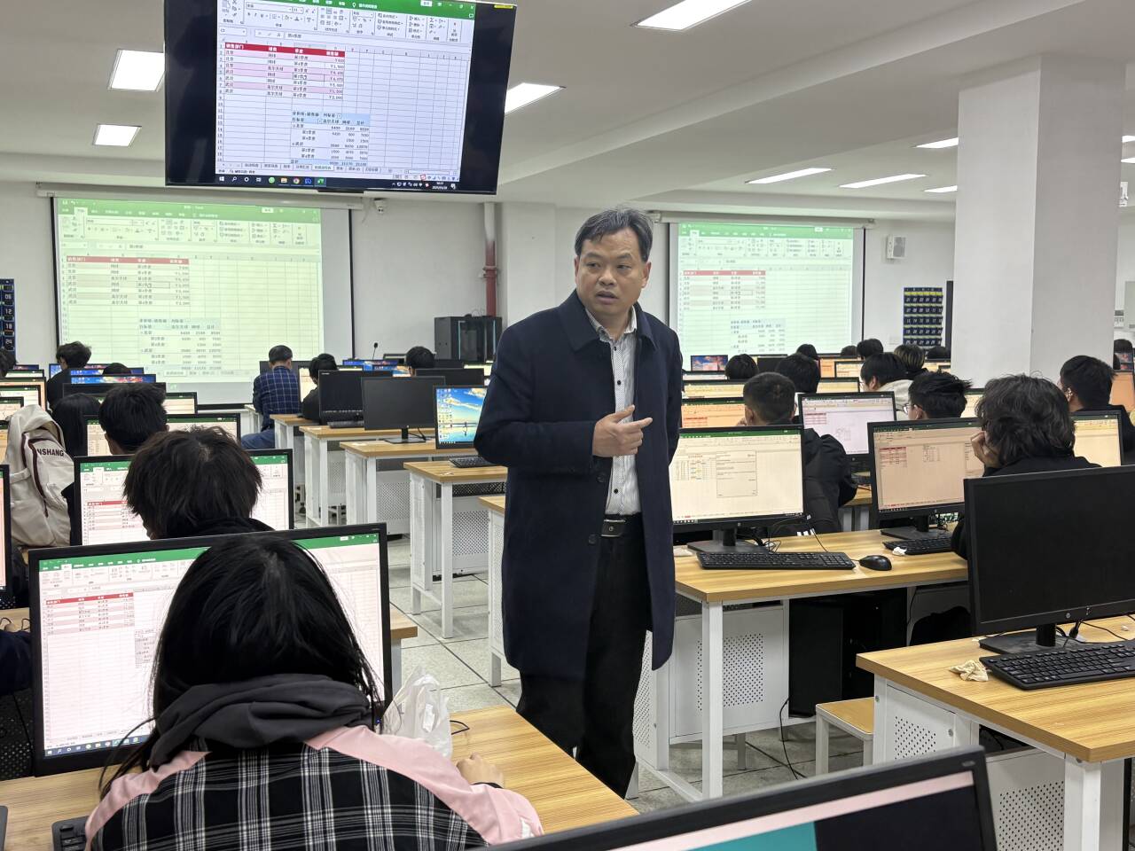 毛教授以“excel表格分析”为主题,通过案例导入、任务驱动和互动讨论等多种教学方法,将理论知识与实际应用紧密结合。课堂上,毛教授通过演示操作、学生动手实践等环节充分调动学生积极性,展现了扎实的专业功底和娴熟的教学技巧。听课教师全程专注记录,对课堂设计、师生互动及信息化教学手段的应用给予了高度评价。
