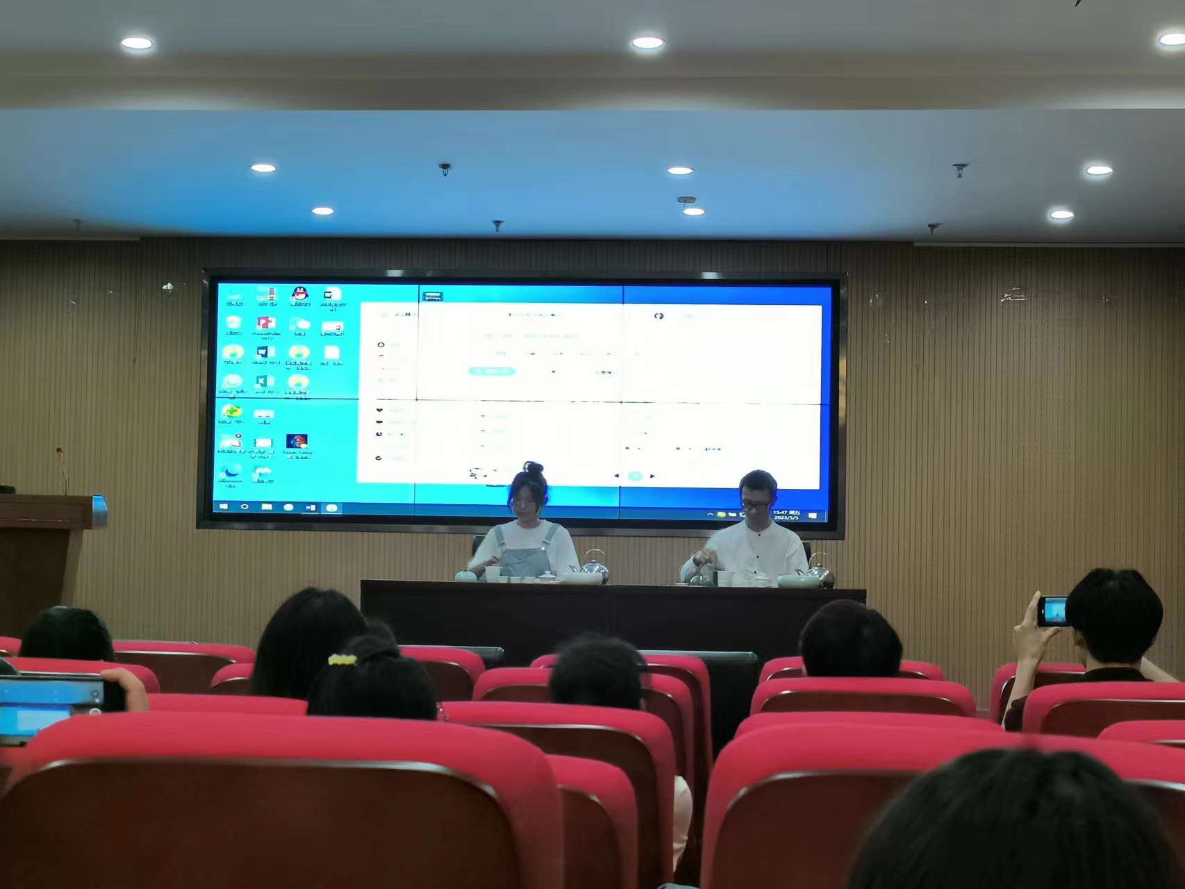 交流会以“悦读美好,共享精彩”为主题,共分为三个环节。分别是交流读书心得、茶艺表演、好书分享。活动气氛热烈,同学们积极上台分享自己的读书经历与感悟,在融洽、和谐、轻松的氛围中,交谈自己在读书过程中的收获,畅谈自己读过的好书。