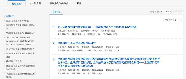 总库检索后,点击各资源类型名称,下方的检索结果区即为该资源类型文献。
