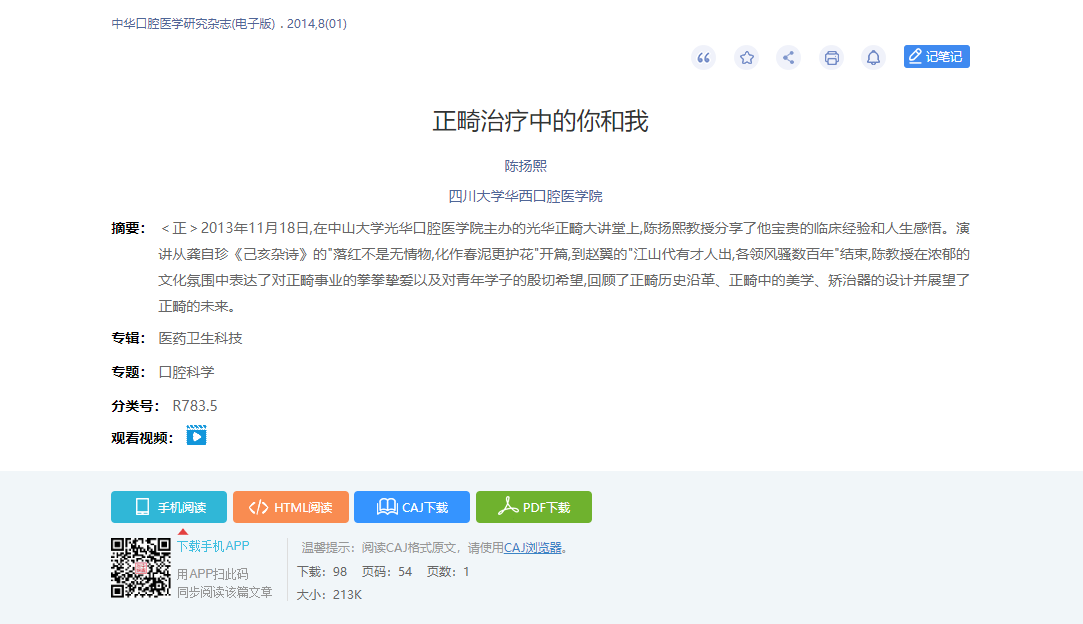 (6) 完善我的CNKI,整合及优化用户常用的文献管理功能,如收藏文献、查看历史记录、关注检索式、论文、期刊及作者等,实现网络版与手机版用户数据的跨平台同步。