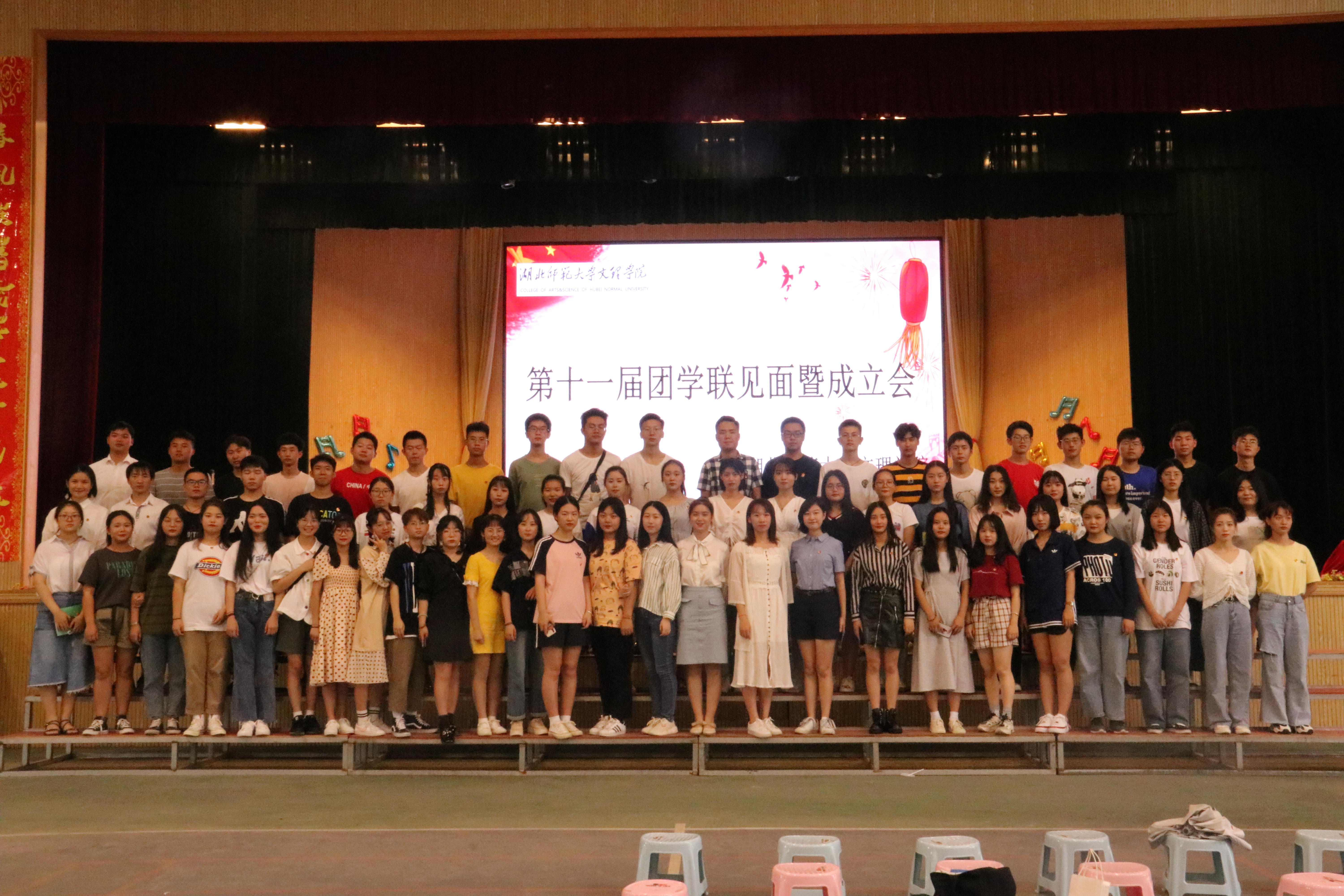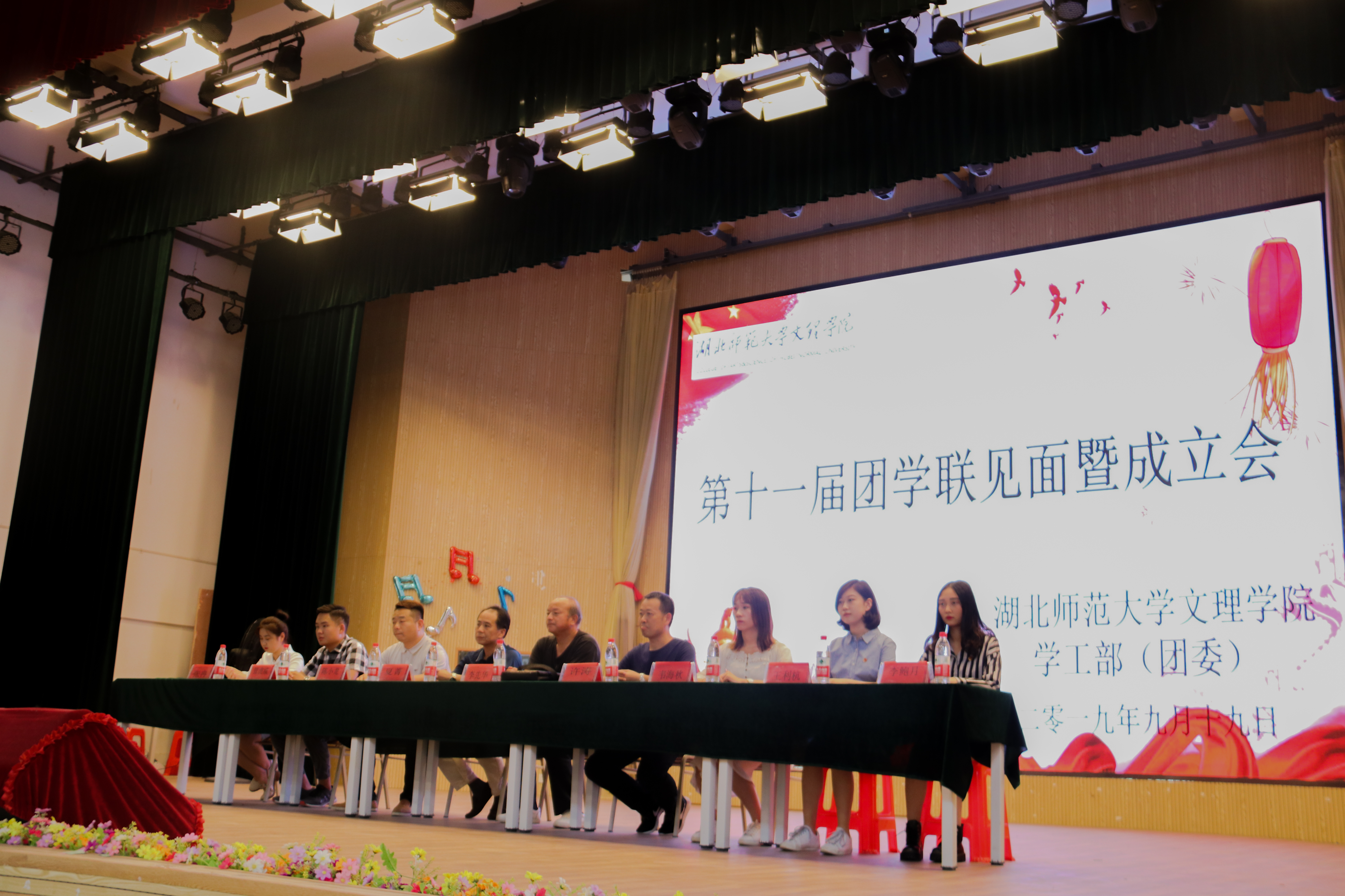 金风萧瑟秋光妙,激情满怀英气豪。9月19日,乐动(中国)第十一届团学联见面暨成立会在风雨操场二楼召开,学工部副部长李先华、图书馆副馆长夏菁、后勤副部长许涛、团委副书记陈小龙、团委指导老师韦海秋出席会议,全体团学联学生干部参加,大会由朱雯瑄主持。