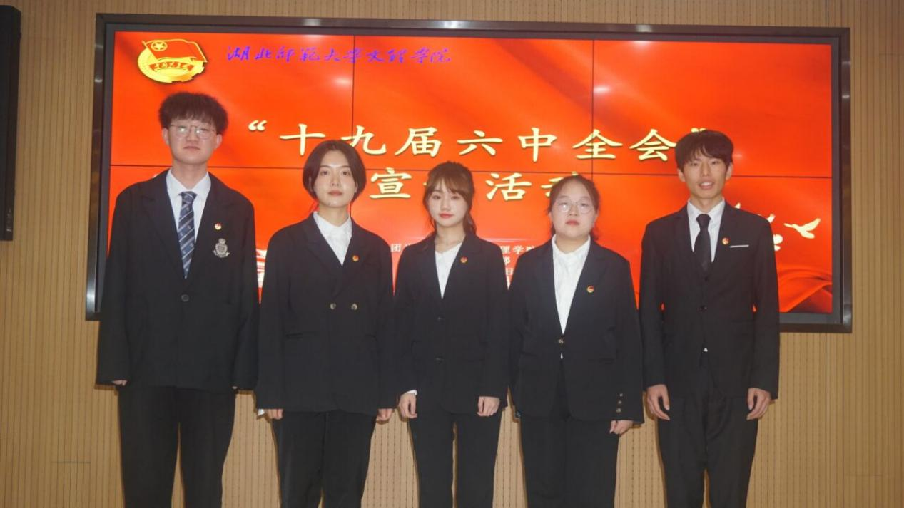宣讲会在全体人员合唱国歌中拉开序幕。宣讲会上,郭寒菲以“凝聚青春力量,共筑美好未来”为主题,号召当代青年要积极投身社会实践,做担当民族复兴大任的有为者;白益银围绕“彰往考来,赓续百年初心”的话题,倡导青年一代勿忘历史、保持初心;马丙龙着眼于学生干部需具备的责任和担当,提出“三能力、四素质”的要求;武如钰回顾党的奋斗历史意义,对党的十九届六中全会精神进行了科学系统、深入浅出的解读,强调要以史为鉴,开创未来。宣讲会在宣讲人们的合影留念中圆满结束。