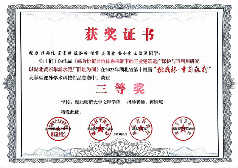 (通讯员:苏祎)5月23日,在团省委、省科协、省教育厅、省学联共同主办的湖北省第十四届“挑战杯•中国银行”大学生课外学术科技作品竞赛中,乐动(中国)四个项目荣获三等奖!