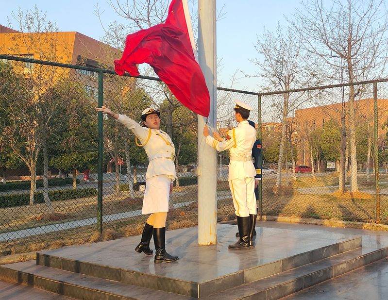 为深入学习贯彻党的二十大精神,弘扬爱国主义,人文学部于2023年3月13日早上七点在学校操场举行升旗仪式。莅临本次升旗仪式的领导及老师有:人文学部主任熊子延、学部党总支部副书记汪玉宝、行政秘书邢建和、专任教师李帮彦及学部全体辅导员老师。