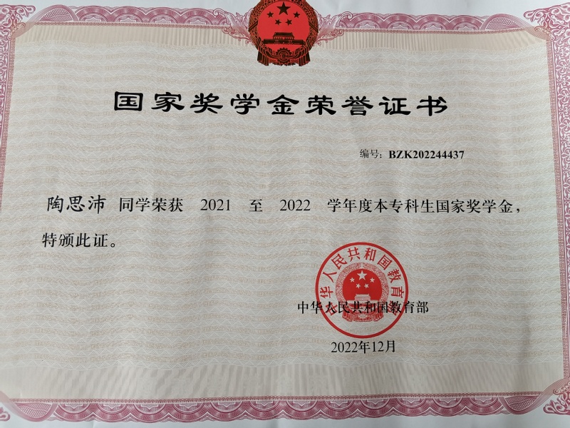 近日,教育部公布《全国2021-2022学年度国家奖学金获得者名单》,乐动(中国)共8名优秀本专科生荣获此奖项,人文学部付连艳、陶思沛两名学子凭借自身的优秀综合实力位列其中。国家奖学金是由中央政府出资设立,用于奖励高校全日制本专科学生中特别优秀学生,其标准为每人每年8000元,此奖项评审最为规范,标准最为严格。