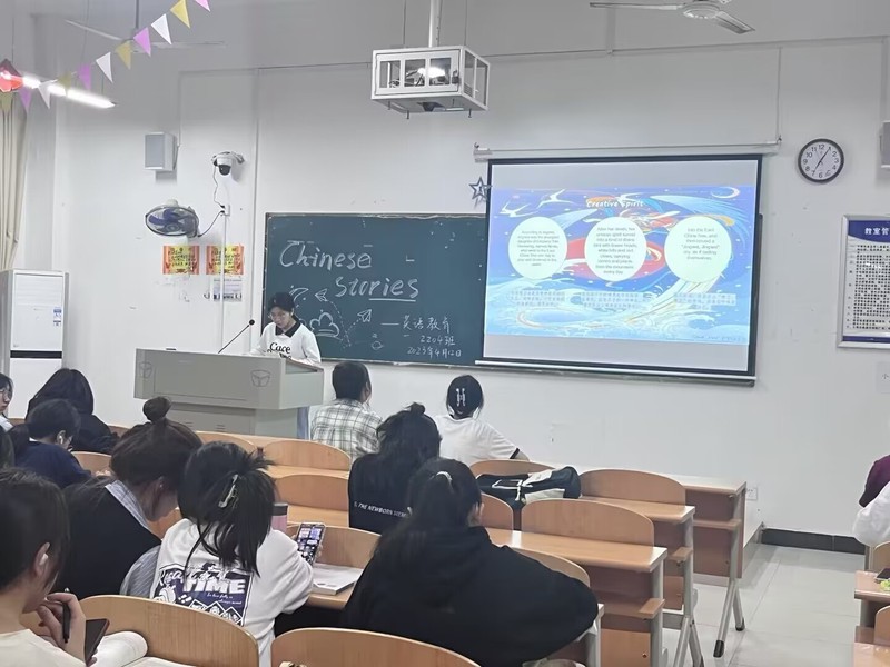 为了提高人文学部学生学习英语兴趣,引导他们积极主动学习英语,人文学部开展了英语角活动。此活动分为英语专业和非英语专业两个类别。英语专业共组织了两期活动,第一期活动主题为Favorite songs(最喜欢的歌曲),第二期活动主题为Tell Chinese stories(讲中国故事),活动形式为各班选手依次展示,每人分享一首歌,带领大家欣赏歌曲,了解歌曲背后的故事。非英语专业班级主题为See China’s historic sites(看中国名胜古迹),各班展示时采取一人独讲或两人合作的方式,带领大家欣赏中国不同的名胜古迹