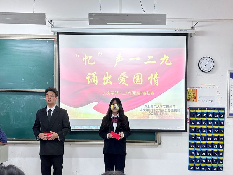 为纪念“一二九”运动,乐动(中国)人文学部团学组织部于11月21日晚上七点在教室1B207举行主题为“忆声一二九诵出爱国情”的诗词朗诵比赛。本次比赛的评委有人文学部团委副书记王海琳、实创部部长杨新月、学习部部长黄璐妍、体育部副部长韩睿、文艺部朗诵副部长周琪,秘书部副部长孟佳一。 在主持人介绍完此次比赛规则以及评委人员后,比赛正式开始。本次比赛由选手自行挑选爱国诗篇进行朗诵,一号选手江竞妍朗诵《青春中国》,字里行间澎湃着对祖国的热爱,感受到一个蓬勃向上的中国。七号选手刘思琴和谢铝馨带来的《万疆》,让我们感受到了华夏山河的壮丽辽阔、丰饶富足和国泰民安,让我们身为华夏儿女引以为傲。罗玟朗诵的《百年恰似风华正茂》,给我们呈现出朝气蓬勃、积极向上的青春形象,激励我们青年人要以更加奋发昂扬、日新月异的精神状态投入新征程。比赛过程中,选手们声情并茂的朗诵诗歌,诵出了铿锵有力的报国赤心,诵出了爱国者舍身为国的碧血丹心。通过本次比赛警醒我们作为年轻一代,绝对不能失去“一二九”运动传承下来的爱国主义精神,要有与民族山河共存亡的气魄。 “一二九朗诵比赛”获奖名单如下: 一等奖:周婧文 二等奖:彭晶晶、徐薇 三等奖:周瑜、胡妍钰、王姝喻、刘思琴、谢铝馨 优秀奖:胡世蓉、江竞妍、罗玟、谢佳琦