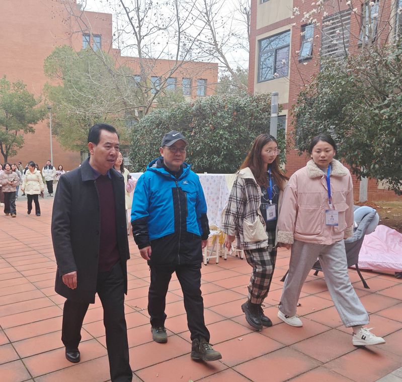 人文学部周景斌书记、后勤保卫部部长徐金光重点检查寝室的安全设施是否完善,如烟雾报警器,应急灯等是否配备齐全且运行正常;检查宿舍的卫生状况、包括床铺、桌面、地面是否干净整洁,通风是否良好等;检查学生是否使用违规电器等行为。