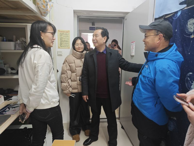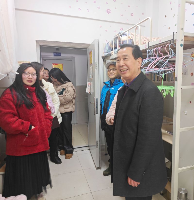 周景斌书记亲切地与学生进行面对面的交流,听取他们在寝室生活中遇到的困难和问题,了解学生的生活需求和心理动态,收集他们的意见与建议,强调人文学部将不断完善和保障好学生的学习以及生活环境,全面提升服务能力与管理水平。