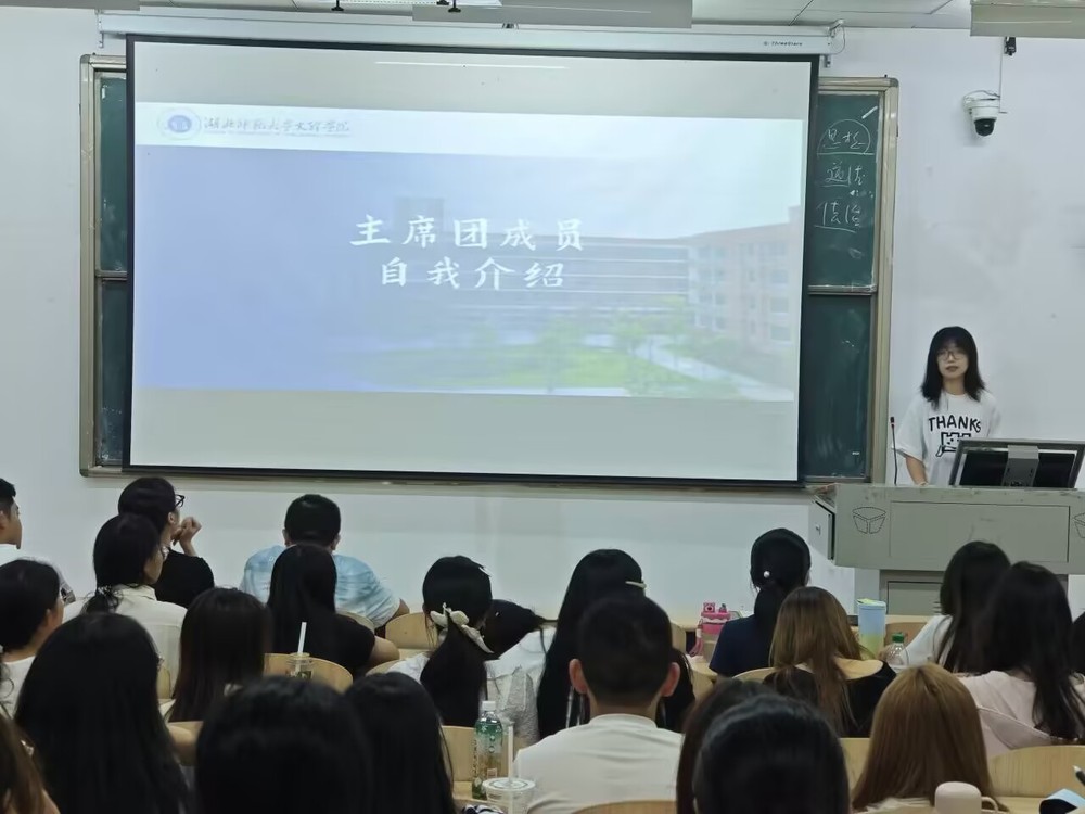 会议开篇,主席团成员依次开展自我介绍。作为学院团学工作的“领航核心”,他们系统阐释了各自的工作思路,使在场成员对团学团队的职能布局形成清晰认知。随后,各部门干部逐一亮相并介绍核心职能,部门代表同步汇报近期工作成果与新学期规划。从秘书部的统筹协调到组织部的活动赋能,到青志队的公益实践等部门的协作,全方面了工作活力与发展前瞻性。紧接着,主席团学生会主席黄立玲发表主旨讲话。她对全体干部干事表示欢迎和感谢,她指出,团学是连接学院与学子的“温暖纽带”,每一项工作都与学子成长同频共振。她鼓励全体成员在实践中锤炼沟通、统筹与担当能力,共同擘画外院团学工作新蓝图。会议尾声,团学指导老师杨峰作总结讲话。他从“思想引领、服务效能、团队建设、成长平衡”四个维度提出要求:一是要以理想信念为帆,发挥先锋模范作用;二是要以学子需求为锚,提升服务精准度;三是要以协作精神为基,打造高效能组织;四是要以学工平衡为要,实现综合素质提升。他寄语全体成员在团学工作中收获成长,在学业发展中勇攀高峰。