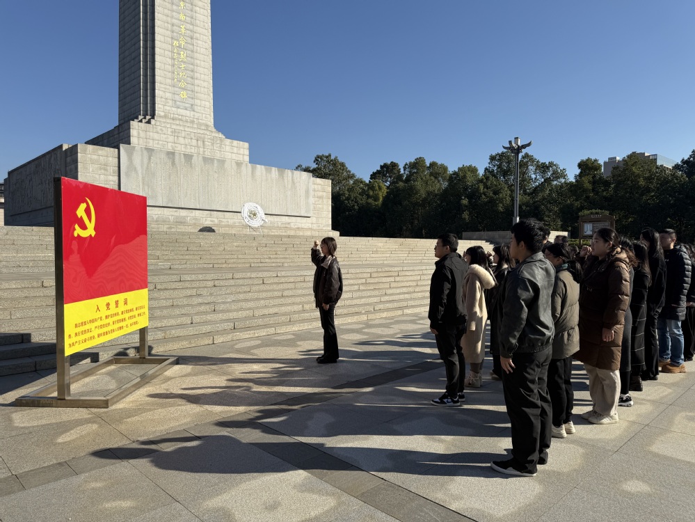 上午8:30,全体党员从乐动网页版图书馆门前统一乘车出发,于9:30抵达湘鄂赣边区鄂东南革命烈士陵园。在巍然屹立的革命烈士纪念碑前,党员同志们整齐列队,于纪念碑前肃立默哀,表达对革命先烈的深切缅怀与崇高敬意。随后,党员代表向烈士纪念碑敬献花篮,学院领导上前整理挽联,寄托哀思。面对鲜红的党旗,全体党员重温入党誓词,铿锵誓言响彻陵园,坚定初心使命。