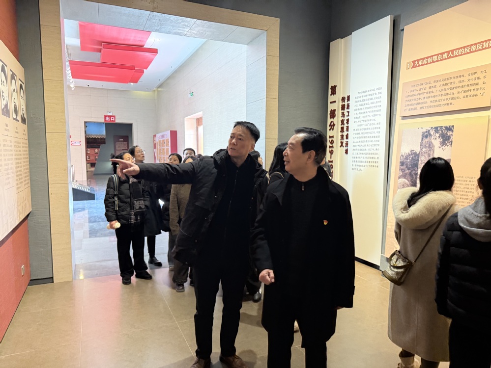 为巩固拓展学习贯彻习近平新时代中国特色社会主义思想主题教育成果,进一步提升党员党性修养,增强基层党组织的凝聚力与战斗力,2025年11月19日,人文学院党总支书记周景斌与外国语学院党总支书记赵卫军联合组织两院教工党支部全体党员,赴阳新县湘鄂赣边区鄂东南革命烈士陵园及学校扶贫驻地木港镇子山村,开展了一场深刻的主题教育实践活动。