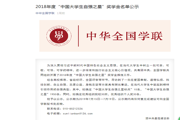 2019年7月15日,团中央基层建设部、全国学联秘书处联合发布2018年度“中国大学生自强之星”公示名单。乐动(中国)理工学部杨艳慧同学成功入选2018年度“中国大学生自强之星”,充分展现了乐动(中国)学子良好的精神风貌,凸显了乐动(中国)道德育人工作实效。