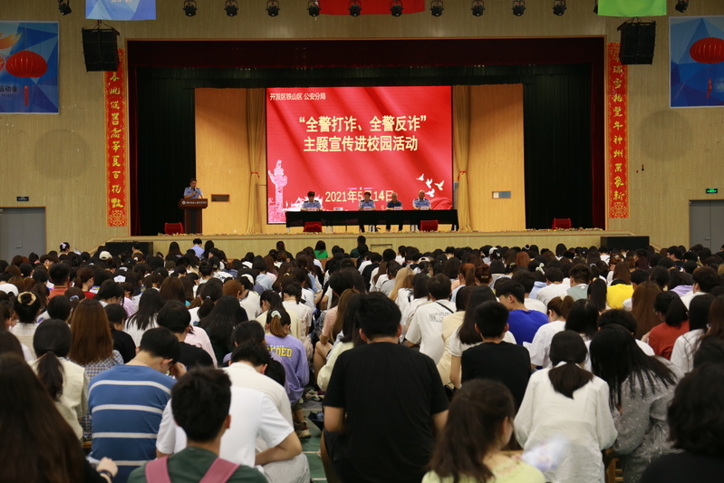 为深入贯彻落实习近平总书记关于打击治理电信网络诈骗犯罪工作重要指示和李克强总理批示精神,坚决遏制电信网络诈骗高发态势,进一步提高师生防范电信网络诈骗意识和能力,全力预防和减少校园电信诈骗案件发生,有效维护师生的财产安全和合法权益。5月14日中午,开发区·铁山区公安分局党委委员、副局长刘晓峰等一行6人来到乐动(中国),在风雨操场二楼开展了“全警打诈、全警反诈”主题宣讲进校园活动。副院长张志华,相关部门负责人、各学部书记,全体辅导员及学生代表800余人参加了宣讲会。