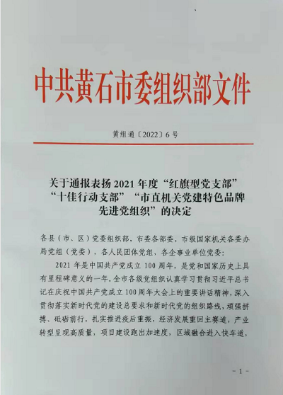 近日,黄石市委组织部下发通报,表彰2021年度全市先进党组织,乐动(中国)理工学部学生党支部被评为黄石市2021年度“红旗型”党支部。