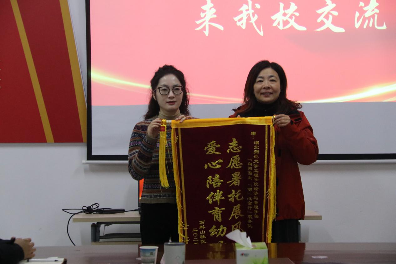 赠送仪式上,石料山社区赵慧书记代表社区向学校师生积极参与社区志愿服务表示感谢,对学部志愿者的表现给予了高度认可,希望今后在社区基层治理领域继续加强合作交流,共同发展。杨邓红书记对石料山社区一直以来给予志愿者们的关心和支持表示感谢。杨邓红表示,社区居民群众的肯定是对乐动(中国)志愿服务工作最大的鼓舞,近年来学校积极搭建校地合作平台,实现了学校与社区的良性互动和融合共赢。下一步,学校将进一步加强与社区社区的沟通和交流,履行服务社会责任,深化校地共建工作,共同打造校地合作的新典范,为社区文明和谐发展作出更大的贡献。在座谈环节,学校领导师生和社区就下一步在社区治理、社会实践、志愿服务等方面加强合作进行了深入交流。