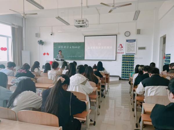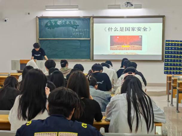 主题班会上,各位辅导员通过PPT讲解、视频展播等形式,向学生普及《国家安全法》、《反间谍法》等法律法规,结合典型案例生动阐述政治安全、生物安全等16个国家安全重点领域的内涵,更是从“维护网络安全”为切入点,引导学生辨析网络谣言,强调“不传密、不拍密”的公民责任。
