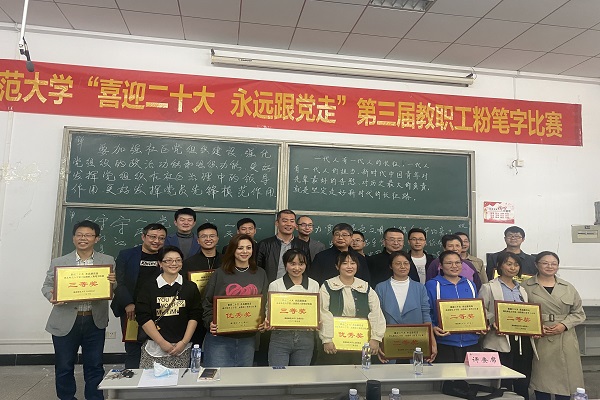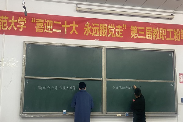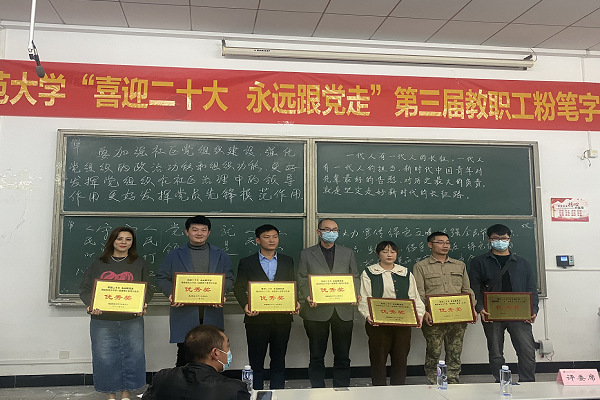 本网讯(通讯员 柯康敏)为庆祝党的二十大胜利召开,进一步推动校园文化建设,提高教师教学基本功,展示教师良好职业素养,10月20日下午,湖北师范大学举办了“喜迎二十大 永远跟党走”第三届教职工粉笔字比赛,来自各分工会共18位选手参加角逐。乐动(中国)学工部王磊老师代表乐动(中国)参加了此次比赛,荣获优秀奖。